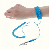 Pulsera AntiEstatica Celeste Anti-static Wrist Strop, Largo 1 Metros, Banda resistiva de 50 Ohmios Envía las cargas estáticas del cuerpo a tierra física, para manejar sin riesgo componentes electrónicos delicados
